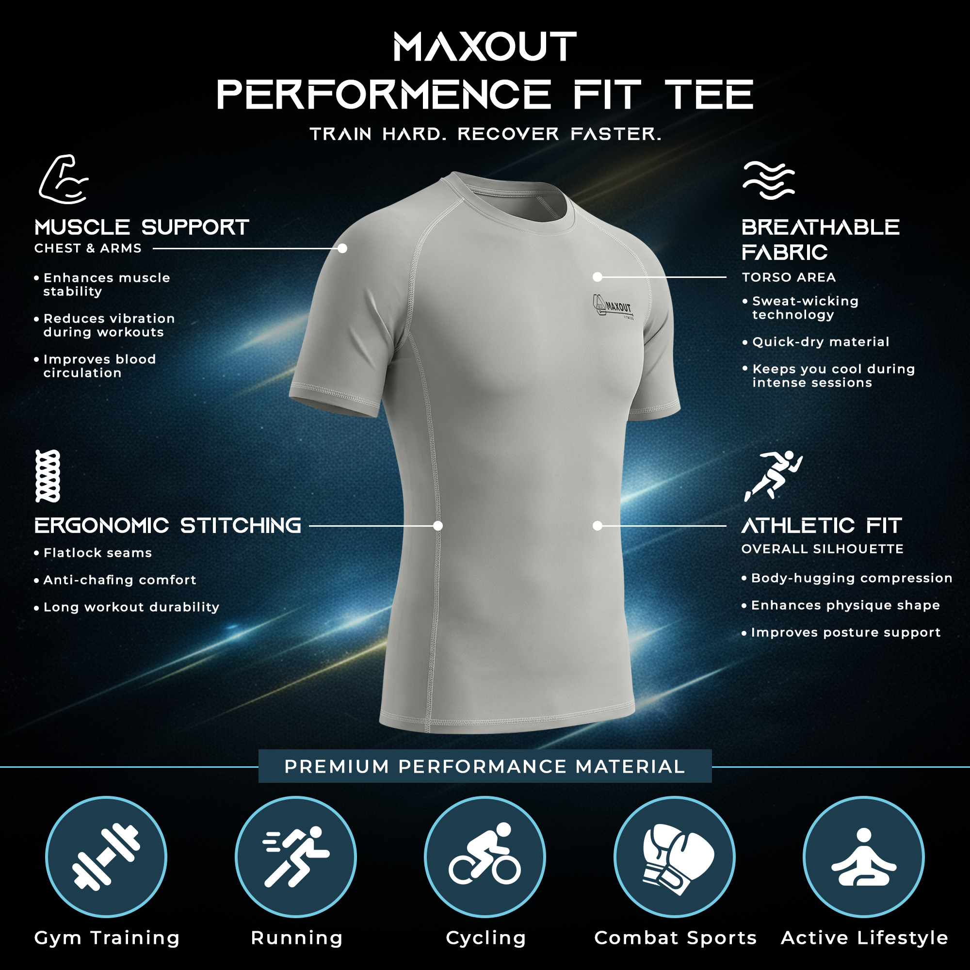 Upgrade your workout wardrobe with our Body Fit Men’s Sports Compression T-Shirt, designed for peak performance and all-day comfort. Made from premium stretchable polyester fabric, this half sleeve compression t-shirt delivers a perfect body-hugging fit that enhances muscle support and improves mobility during intense training sessions.